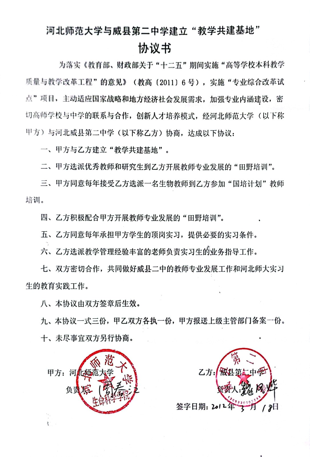 协议-威县第二中学